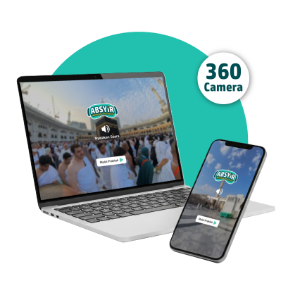 Absyir adalah website belajar umrah terlengkap di Indonesia. Anda bisa praktek thawaf, sa’i, dan menjelajahi Masjidil Haram seolah langsung di lokasi dengan simulasi interaktif 360°. Bersama Absyir, anda bisa belajar sampai 100% siap umrah, tanpa khawatir lagi.