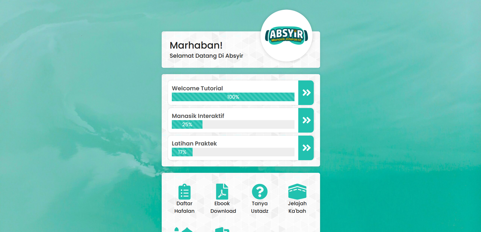 Absyir adalah tempat belajar manasik umrah online, jadi jamaah bisa belajar dengan mudah & praktis lewat HP/Laptop.