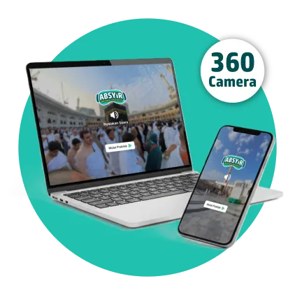 Absyir adalah website belajar umrah terlengkap di Indonesia. Anda bisa praktek thawaf, sa’i, dan menjelajahi Masjidil Haram seolah langsung di lokasi dengan simulasi interaktif 360°. Bersama Absyir, anda bisa belajar sampai 100% siap umrah, tanpa khawatir lagi.